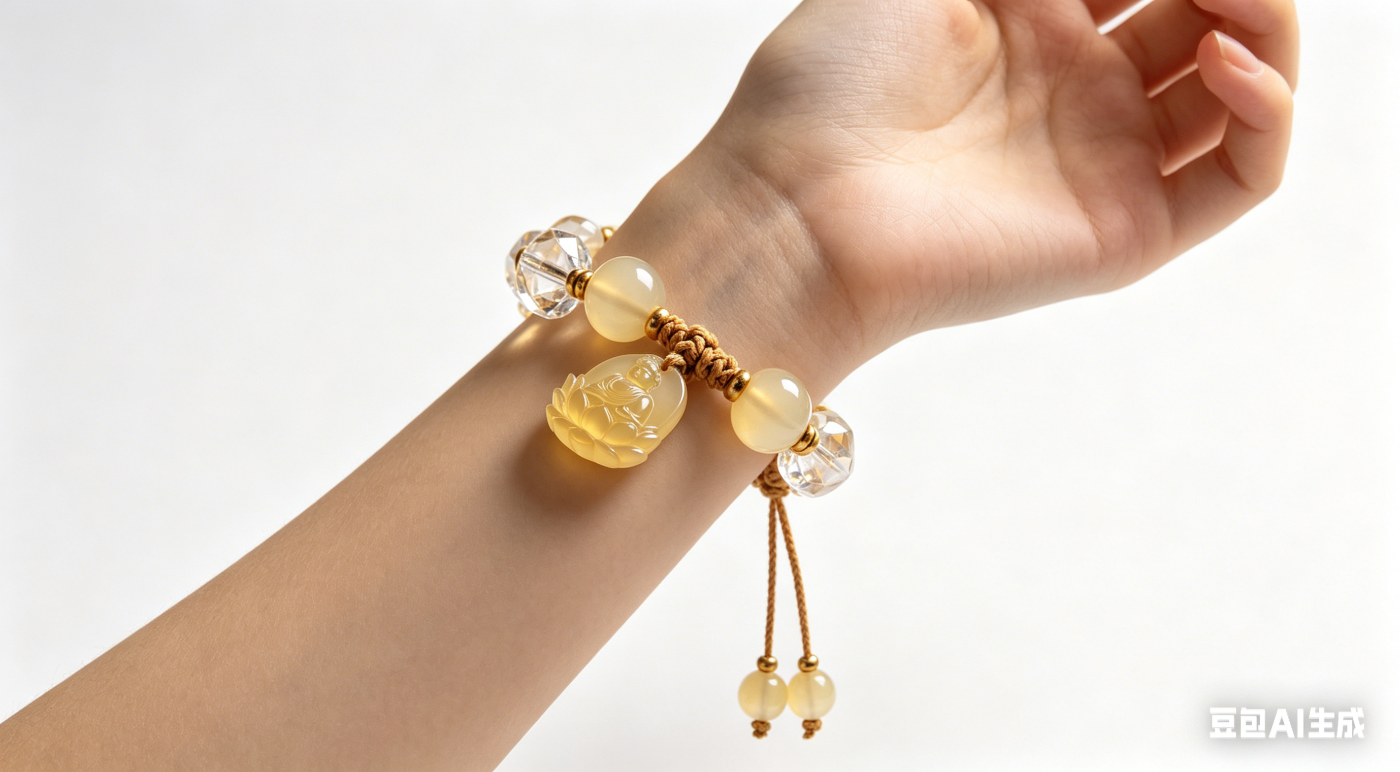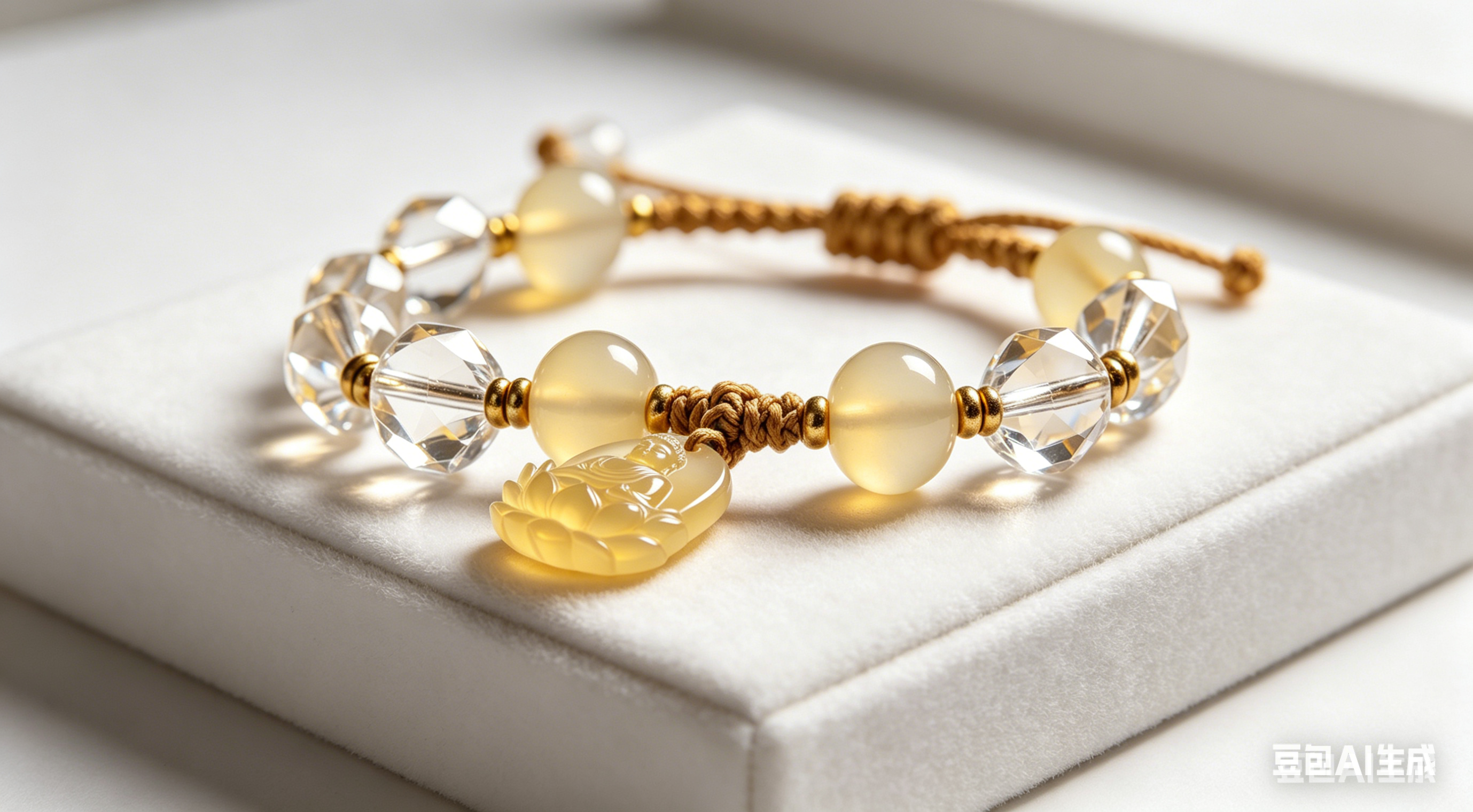 Golden Lotus Clear Quartz Calming Abundance Spiritual Bracelet Talisman | FORTUNECHOICE