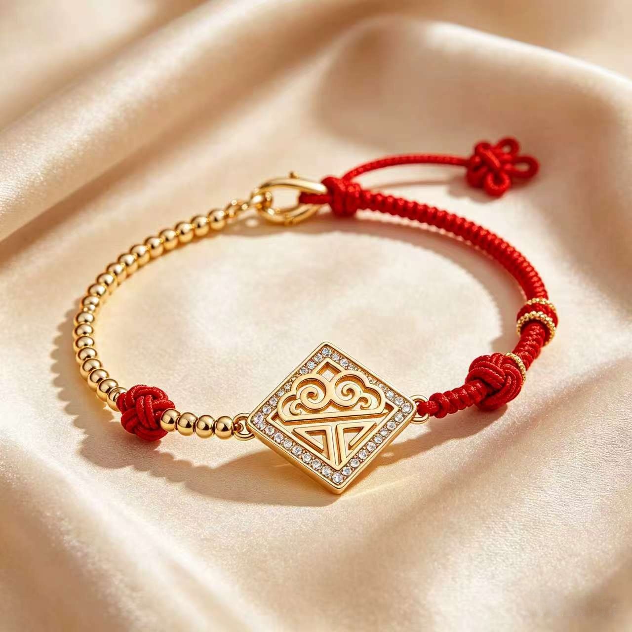 Shop the exclusive Lucky Cloud Red String Bracelet by FORTUNECHOICE. Combining sacred ancient red string, timeless auspicious cloud motif and premium gold crystal detailing. This unisex spiritual talisman brings powerful protection, endless good fortune, wish fulfillment and positive energy. Adjustable design for perfect fit, ideal for daily wear, spiritual rituals and meaningful lucky gifting.