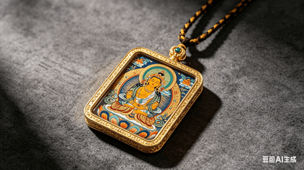 At its heart sits a diamond-shaped polished gold charm, engraved with the sacred ancient Ruyi cloud — the ultimate universal symbol of good luck and fulfillment. Sparkling hand-set crystals line the border to amplify positive light and aura.