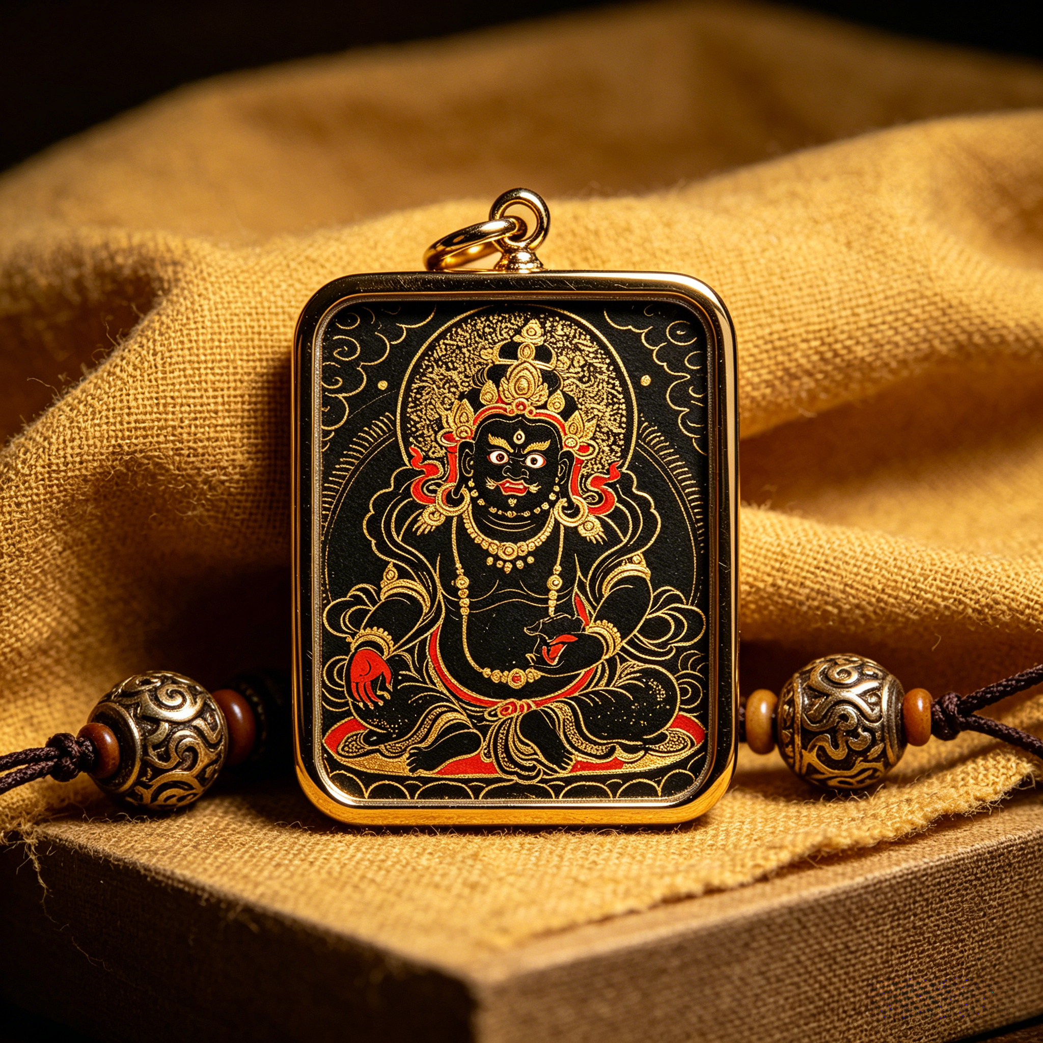 Yellow Jambhala Wealth Thangka Pendant | Ultimate Prosperity & Protection Spiritual Amulet |